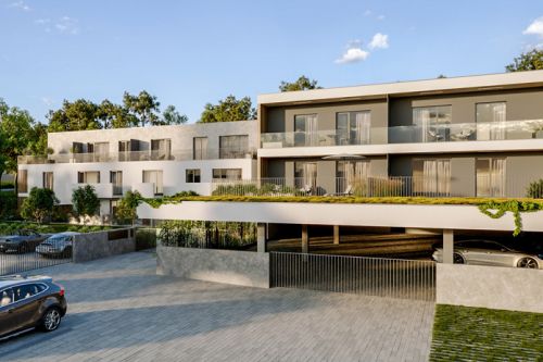 Tvar a umístění domu reaguje na okolní zástavbu a orientaci ke světovým stranám. Dům se obrací směrem do zelených ploch předzahrádek a společné zahrady a je odcloněn od přilehlé komunikace zastřešenými parkovacími stáními, které jsou kryté zelení, jak na střechách, tak na svislých konstrukcích.