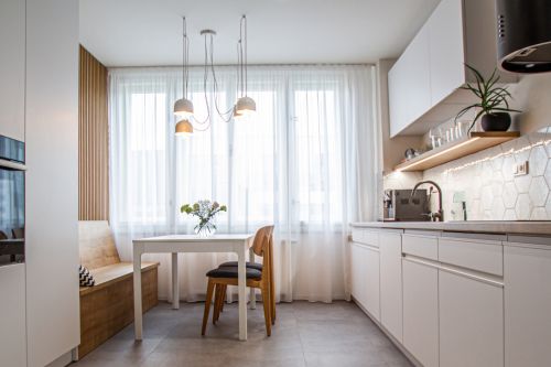 Klientka nás oslovila s tím, že potřebuje pomoci se svým startovacím bytem 2+1 (67 m2) pro sebe a svého snoubence. Mladý pár si přál jednoduchý, světlý interiér, ve kterém by převládaly přírodní materiály. Nejlépe je vystihoval skandinávský styl, kterým jsme se následně inspirovali. Půdorys bytu je hodně členitý, ve stěnách se nachází všelijaké kouty a niky. Ty jsme využili pro umístění vestavěného nábytku, stěny jsme nově zcelili a přitom jsme místnosti příliš nezaplnili.